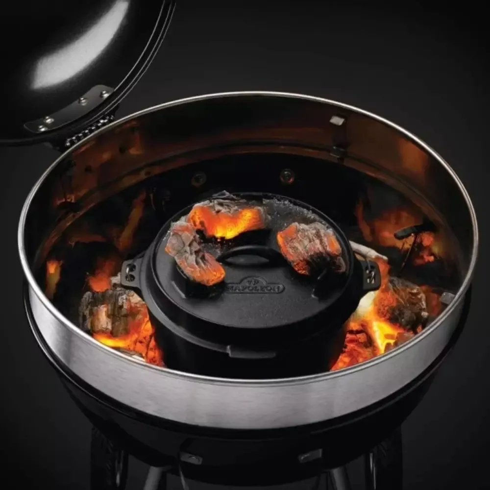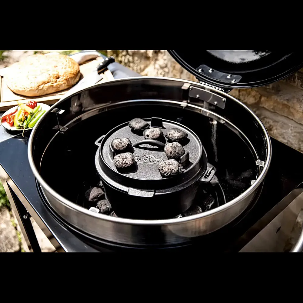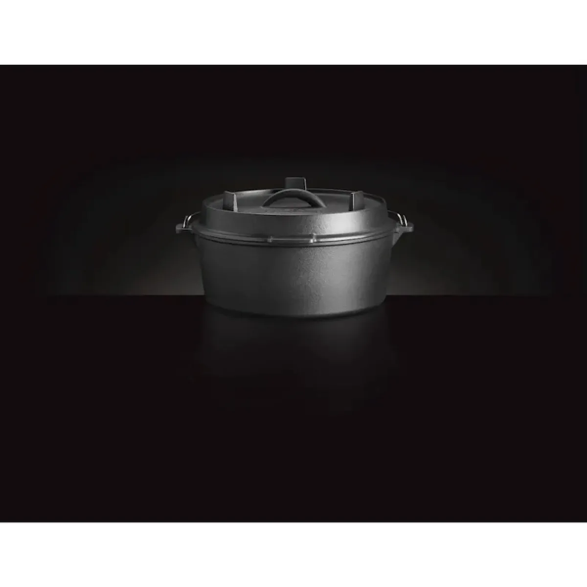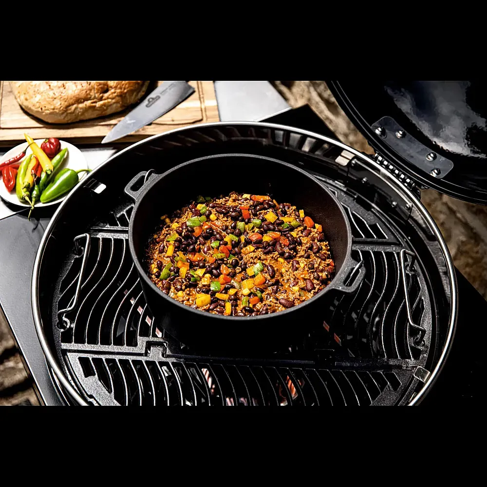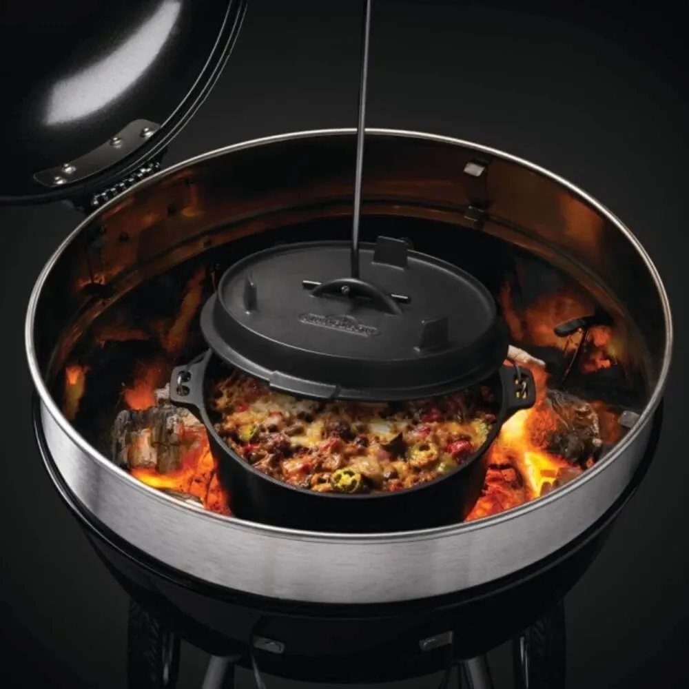 Когда дело доходит до приготовления пищи на гриле, эта 6 литровая чугунная голландская печь как раз то, что нужно. Чугун — один из лучших проводников тепла. Он сохраняет и равномерно распределяет тепло, обеспечивая равномерное приготовление и поддержание пищи в тепле. Прочная чугунная конструкция с фарфоровым покрытием проста в использовании и уходе. Медленное приготовление пищи для большого количества людей — идеальное применение для этого аксессуара. Используйте его на гриле и боковых горелках, над или непосредственно на углях и даже в вашем костре. Эта универсальная чугунная голландская печь отлично подходит для приготовления супов, рагу, бобов и даже выпечки хлеба. И крышка, и дно оснащены встроенными ножками, а крышка даже может использоваться как чугунная сковорода. Поднимите свою готовку на новый уровень, где бы вы ни находились, с чугунной голландской печью.