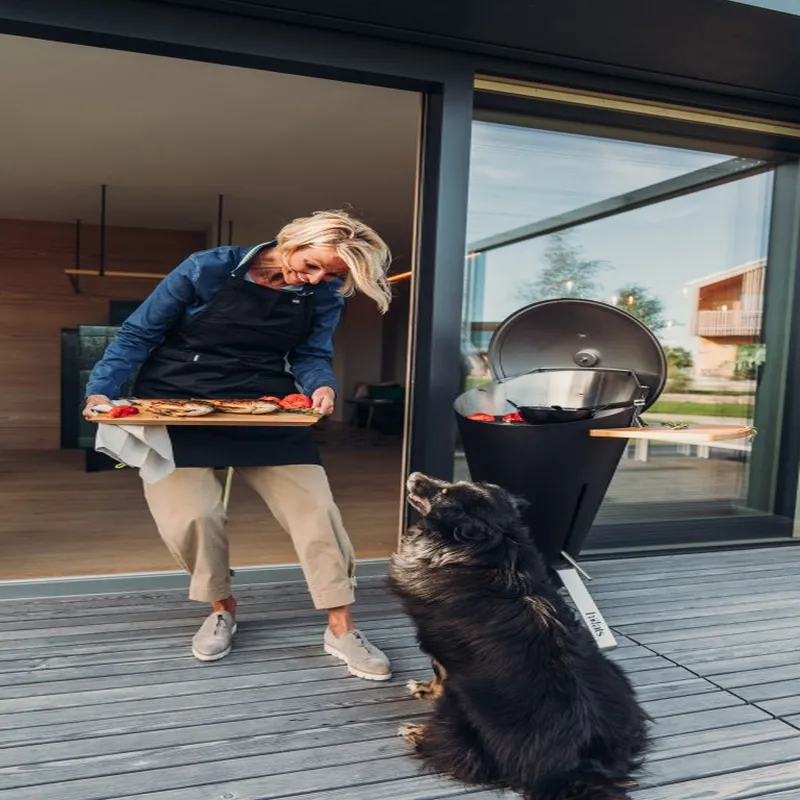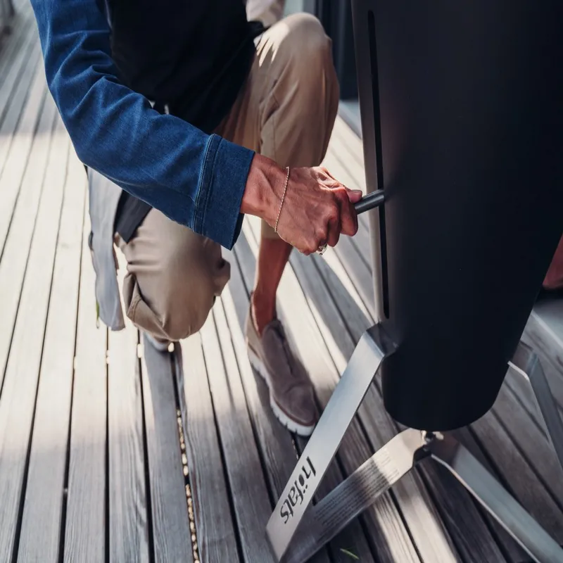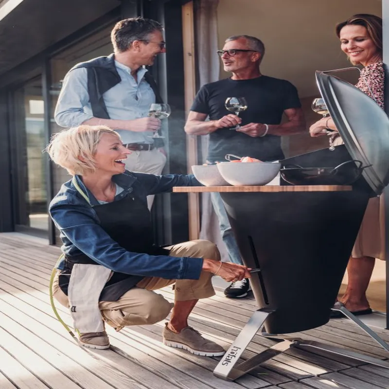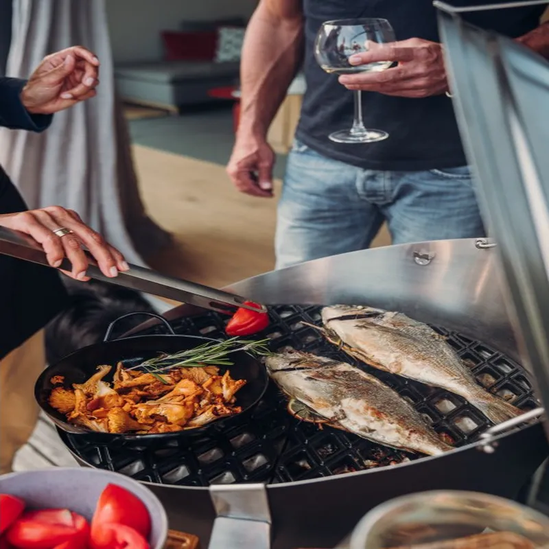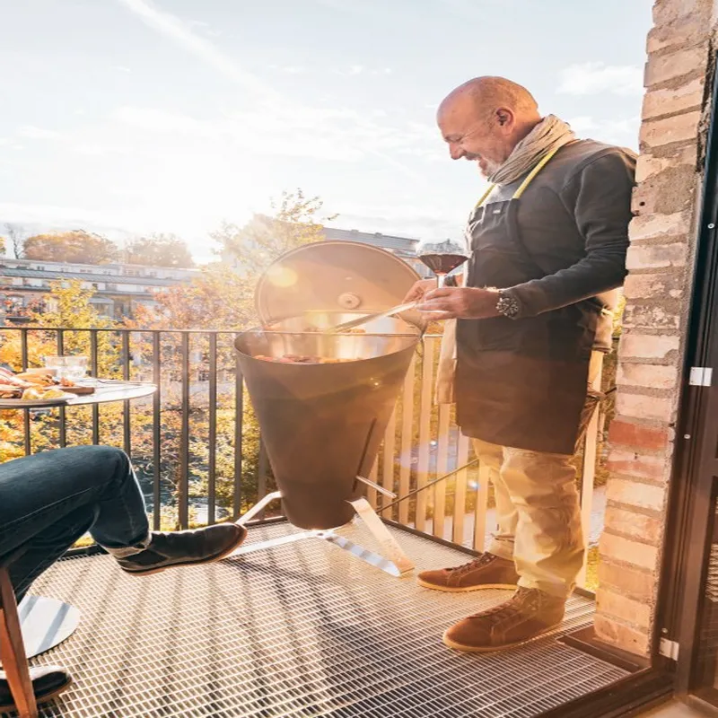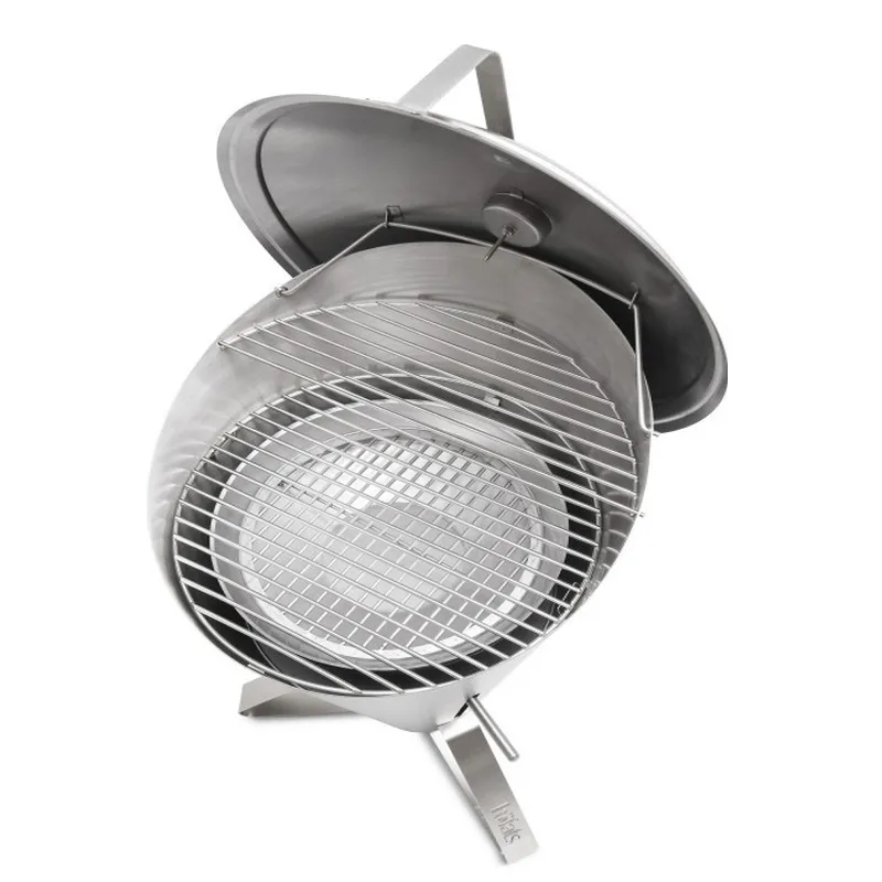 Гриль - кострише Hoefats Cone - это первый угольный гриль, где можно эффективно регулировать тепло. Регулировка тепла стало возможно благодаря принципу расстояния источника тепла с пищей, которую нужно запекать с подачей воздуха. Порошковое покрытие является термостойким. Диаметер решотки для приготовления Ø 46 см а диаметер для обогрева Ø 50 см. Изготовлен из 100% нержавеющей сталы.