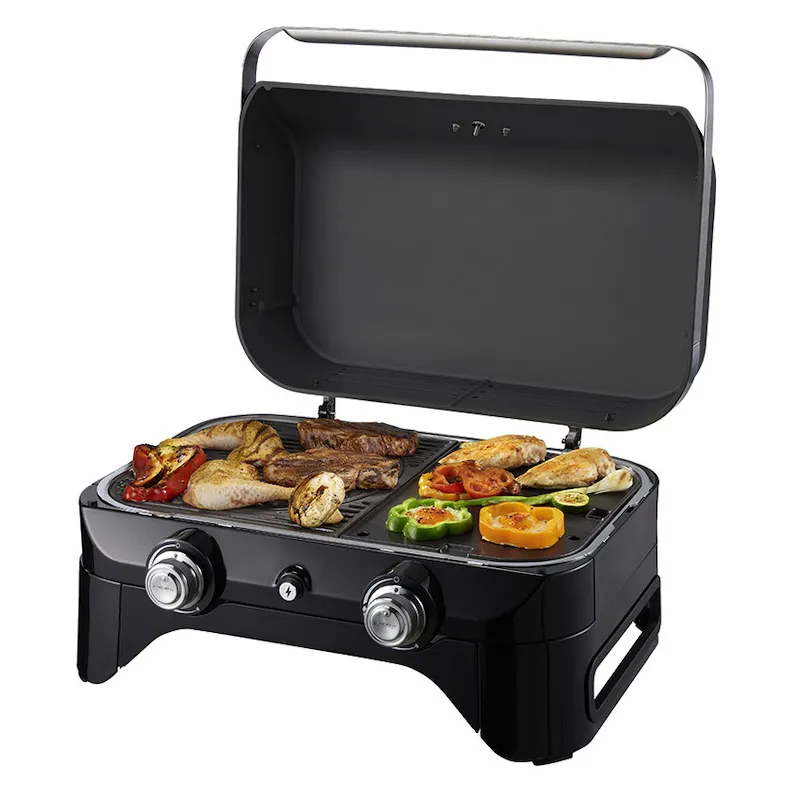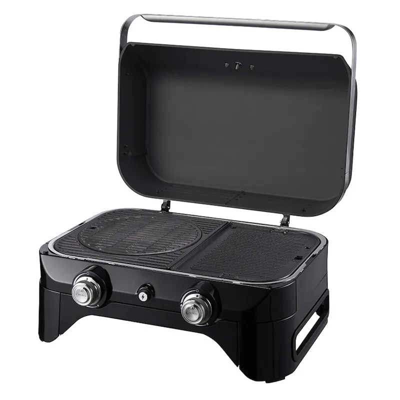 Гриль на газу брендовый отличается наличием двухзонной рабочей поверхности, что позволяет использовать как чугунную решетку для мяса, так и литой поддон, который отлично подходит для мелких овощей, паэльи, пиццы и прочих ваших любимых блюд.
