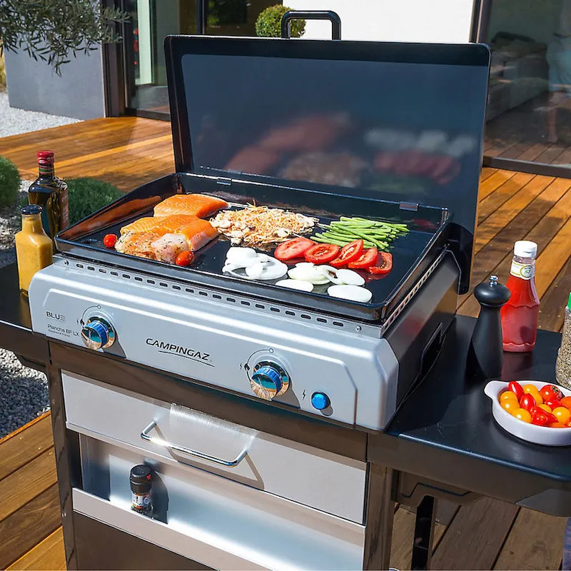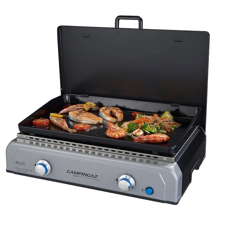 Фирменный газовый гриль планча серии BF LX от известного французского производителя компании Campingaz – это отличный вариант для начинающих и профессионалов. В модели Plancha BF LX используется запатентованная технология горелки Blue Flame, которая обеспечивает равномерное распределение температуры по всей поверхности гриля.