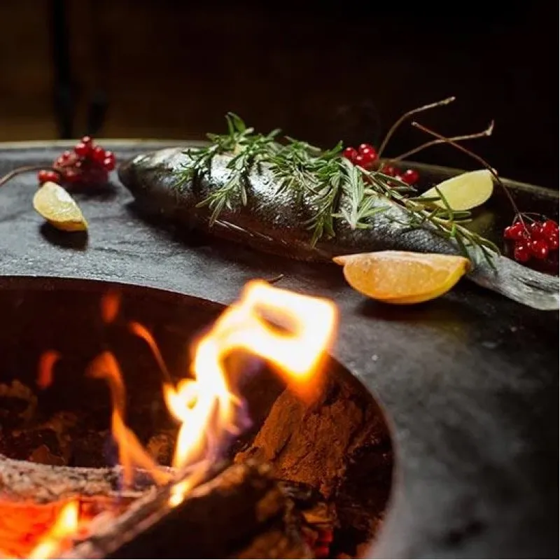 Высокая производительность мангала, равномерный и контролируемый прогрев поверхности для жарки, удобная рабочая высота гриля превращают AHOS BIG SHERE в удобный инструмент в руках профессионального повара. А открытый огонь и необычный внешний вид гриля превратят процесс приготовления еды в кулинарное шоу.