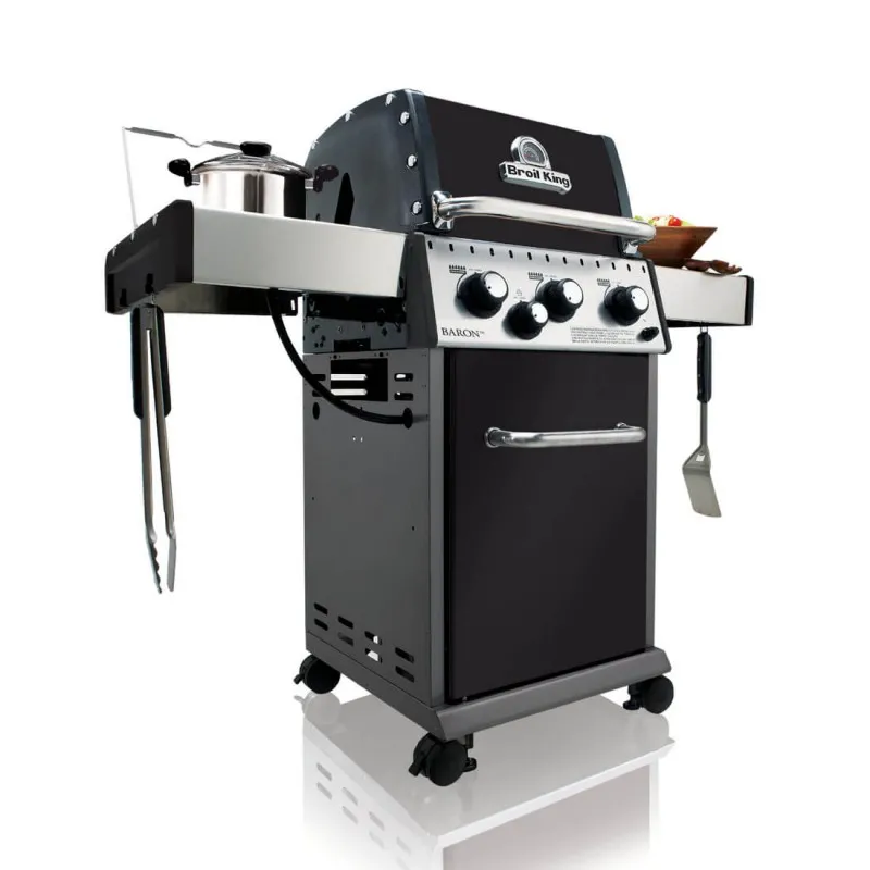 Уличный гриль барбекю от популярного бренда Broil King серии Baron 340 обладает множеством функций, которые позволяют приготовить на гриле блюда, соответствующие высочайшим стандартам качества Broil King. Три двухтрубные первичные горелки из нержавеющей стали обеспечивают превосходное качество готовки, обеспечивая равномерность нагрева и подогрева ваших любимых блюд.
