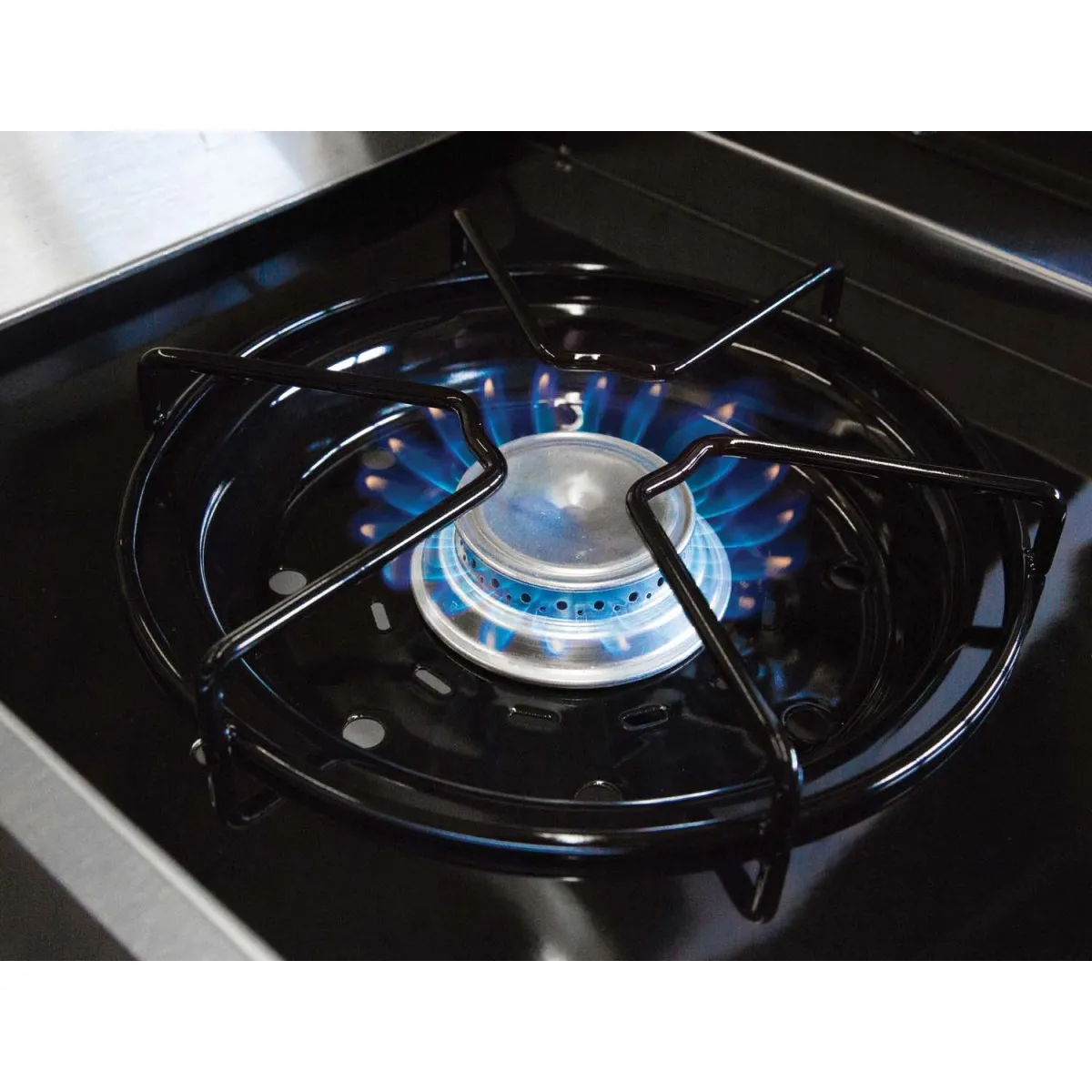 Гриль профессиональный оснащается четырьмя трубчатыми горелками из нержавеющей стали, гарантирующими необходимый уровень нагрева, а также боковой конфоркой мощностью 2,7 киловатт. Фирменная система приготовления пищи FlaveRWave позволяет готовить, используя выделяющийся из мяса сок и жир. Это придает вашим блюдам неповторимый и оригинальный вкус и аромат.