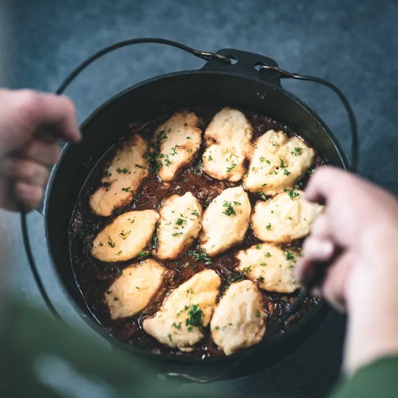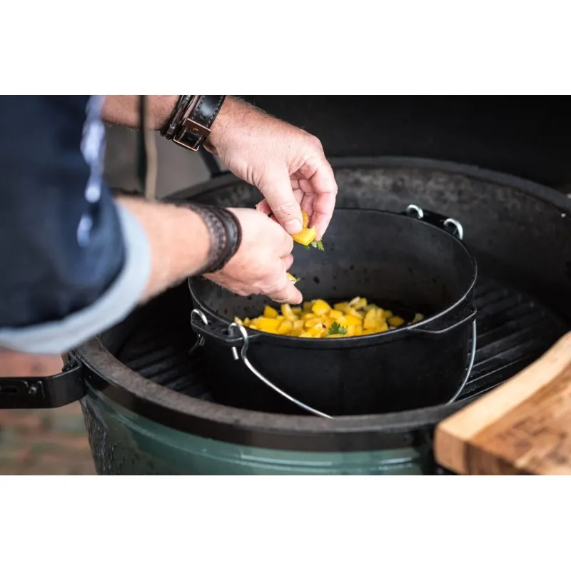 Этот универсальный чугунный котелок прослужит вам на всех фронтах. Казан Big Green Egg идеально готовит тушеные блюда, овощи для пюре, супы и жаркое. Чугун распределяет тепло по всему котелку, а тяжелая крышка удерживает влагу внутри. Вы также можете использовать его без крышки: тогда все ингредиенты приобретут характерный вкус блюда, приготовленного в Big Green Egg. В обоих случаях тушеное мясо получится невероятно сочным и нежным.