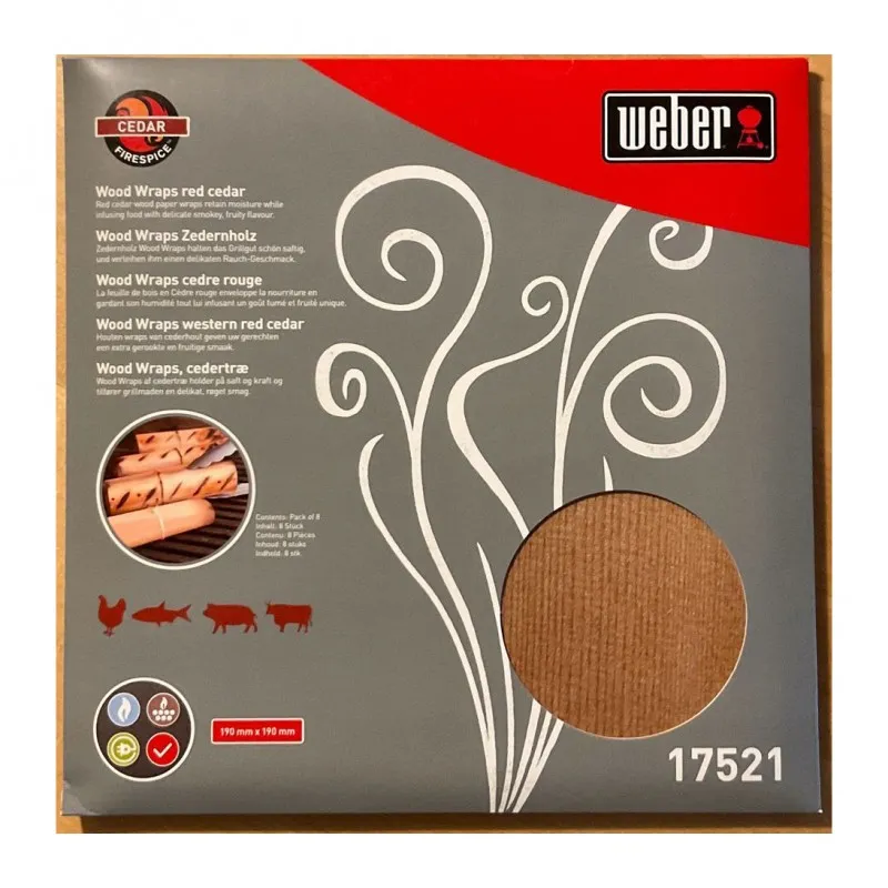 Откройте новые грани барбекю вместе с кедровым шпоном для копчения и сладковатым ароматом дыма, которым она пропитывает блюда. Просто заверните в шпон из розового кедра лосося, филе индейки или мясо, и готовьте их на решетке гриля. Придайте блюдам отличный аромат! Для невероятно мягкого фруктового аромата дыма. Идеально подходит для рыбы, мяса и птицы.