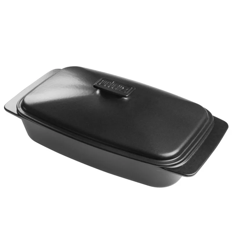 Стандартная стеклянная емкость для запекания может быть вариантом для использования по аналогичному сценарию совместно с грилями и барбекю, однако, у нас есть лучшее решение – это керамическая емкость для запекания с крышкой Weber.
