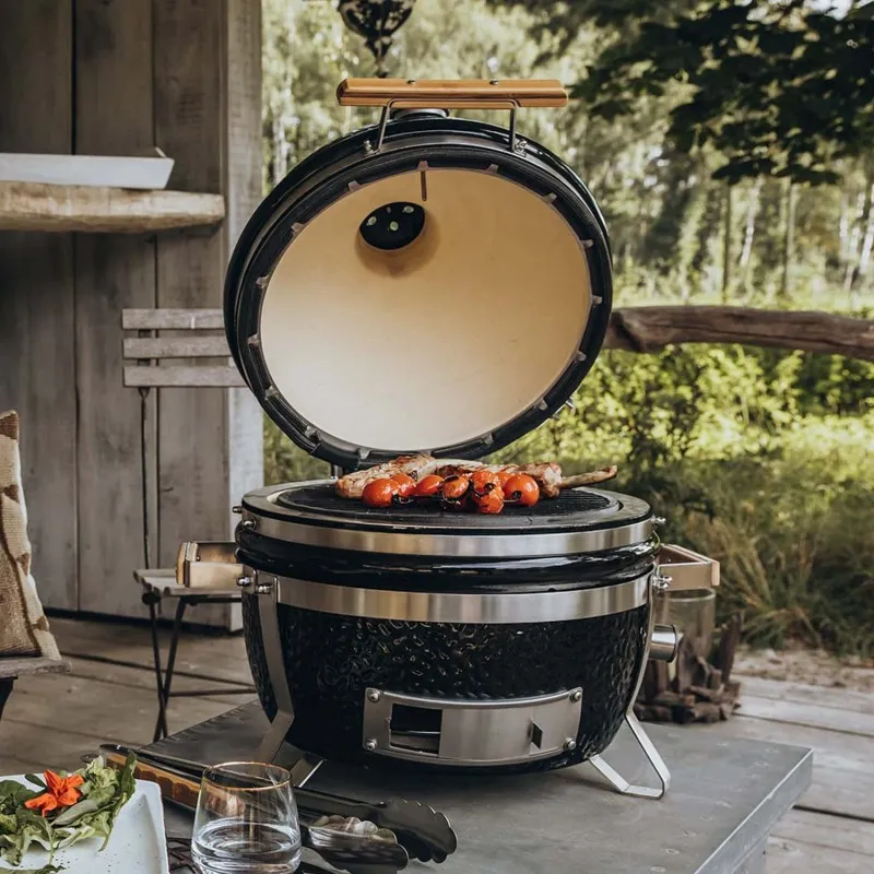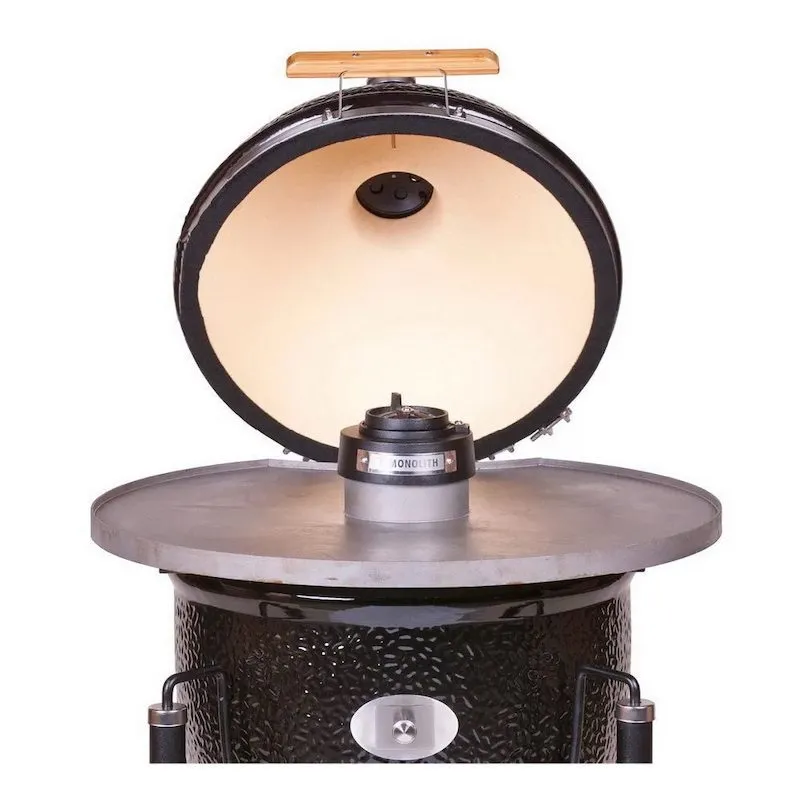 С помощью керамического гриля Monolith ICON можно не только грилить, но и печь и жарить его даже можно использовать как мангал для пикника, благодаря своему небольшому размеру и весу. Особенность гриля Monolith ICON: крышку можно снять и использовать ICON как обычный мангал, или положить стальную плиту сверху. На плиту можно прикрепить капельницу для сбора жира и золы. Гриль Monolith ICON имеет диаметр решетки 33 см на которой легко готовить еду для компании из 3 человек. Вес гриля составляет 35 кг, высота гриля 50 см, а диаметр 53 см. Гриль доступен в черном цвете со стальными ножками. Его можно использовать как гриль в стиле Plancha или Teppan при различных температурах. Температура очень высокая в центре гриля и немного ниже на внешних частях, где плита выступает. Это означает, что вы можете жарить пищу посередине и перемещать ее к внешним частям, чтобы готовить и сохраняя тепло. Для любителей мяса, рыбы, овощей и пиццы сложно будет найти замену грилю ICON. Самое важное то, что голодным гостям не прийдется долго ждать, гриль нагревается очень быстро и температуру (100 градусов) можно поддерживать до 20 часов, чтобы приятные вечера не заканчивались быстро.
