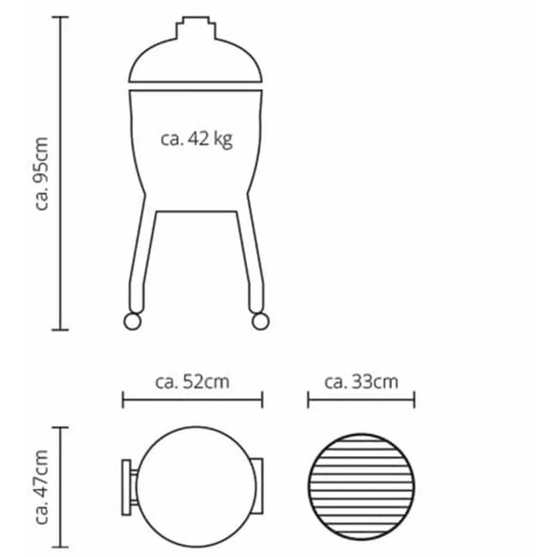 Керамический гриль Monolith Junior комплектуется решеткой диаметром 33 см, это самая маленькая модель в ассортименте нашей продукции. Несмотря на компактные размеры MONOLITH Junior отлично зарекомендовал себя как гриль, коптильня, духовка и тандыр. Его размер отлично подходит для установки на балконе или в кемпинге. Благодаря размерам он пользуется большим спросом также в профессиональных поваров. Его вес 43 кг, поэтому транспортировка не вызывает сложностей. В сочетании с дополнительной решеткой открывается возможность одновременного приготовления нескольких блюд и гарниров. Уникальная система подачи щепы для ароматизации дыма позволяет добавлять ее через отверстие в корпусе без вскрытия гриля. При применении таких комплектующих, как чугунная решетка или керамический противень для пиццы Monolith Junior становится универсальным средством приготовления пищи. Monolith Junior в варианте комплектации со стальными ножками, а также без опорной части с керамическими ножками для эксплуатации в составе гастрономической кухни и походной кухни на пикнике.