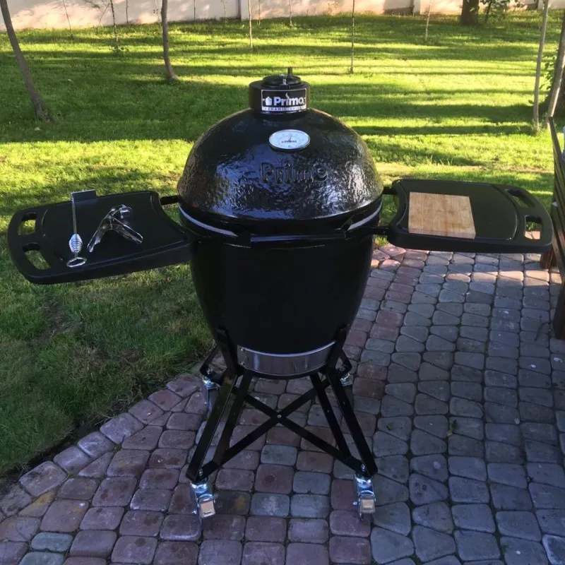 Элегантный дизайн с использованием высококачественных материалов и лучшей обработанной керамики, нержавеющей стали и бамбука. Проведите отличное барбекю-мероприятие с семьей и друзьями, наслаждаясь стильным грилем.