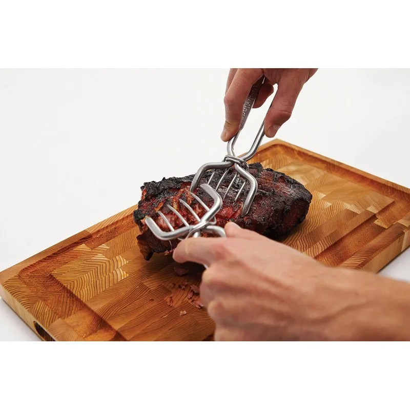 Эти прочные вилки для мяса созданы, чтобы удерживать и разделывать жареное и тушеное мясо или курицу. В комплект также входит силиконовая ручка-крючок, на котором обе вилки можно хранить вместе. Ручка-крючок способна выдержать температуру до 260 °C , а также подходит для мытья в посудомоечной машинке!