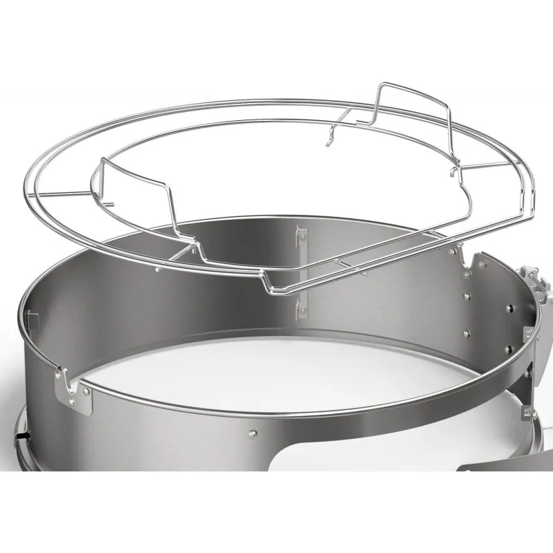 Дополнение для гриля Ø 60 см. Идеально подходит для приготовления крупной домашней птицы - индейки или гуся, а также для использования второй решетки для гриля. Кольцо вставляется между чашей для угля и крышкой. Идеально подходит для выпекания пиццы - в кольце предусмотрено специальное отверстие для помещения пиццы в гриль без потери тепла (результат - приготовление, как в каменной печи). Материал: нержавеющая сталь.