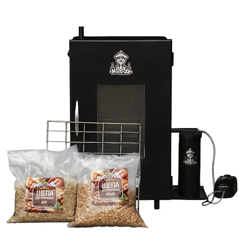 - Комплектация: дымогенератор с конденсатосборником 2,5 л, шкаф коптильный, компрессор, крепление, силиконовые шланги,болты крепежные - 2 шт., решетки с пищевой нержавейки – 2 шт., инструкция к дымогенератору