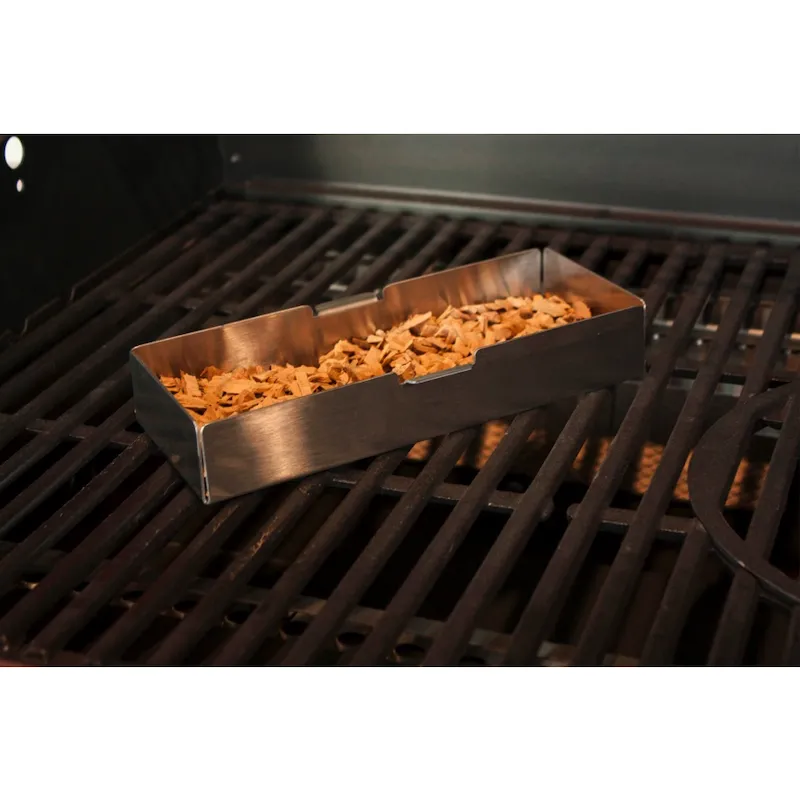 Контейнер смокер-бокс GrandHall в сочетании со специальной древесной щепой придаст еще более приятный аромат Вашему любимому блюду. Приготовление еды не обойдётся без специальных аксессуаров, которые помогут сделать процесс готовки удобнее и проще. Волшебная коробочка смокер-бокс GrandHall изготовлена из высококачественной пищевой нержавеющей стали. Просто добавьте ароматных щепок внутрь и поставьте под крышку смокер-бокс и ваши блюда будут ароматнее, чем на углях, безо всяких твердых частиц и вреда здоровью, ведь газ, как известно, выгорает полностью не оставляя вредных веществ на продуктах. Так что, если хотите добавить блюду приятный древесный аромат – приобретайте правильный аксессуар от компании GrandHall. Благодаря небольшим габаритам аксессуар не займет много места под крышкой, а качественная нержавеющая сталь, из которой изготовлена данная коптильная коробка, позволит служить верой и правдой долгое время.