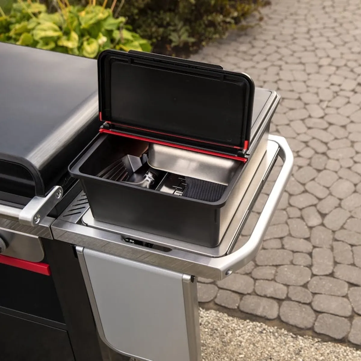 Контейнер для аксесcуаров Weber Slate — это удобный уличный контейнер для хранения вашего барбекю оборудования. Он обеспечивает безопасное хранение вещей под защитой от непогоды благодаря плотно закрывающейся крышке.