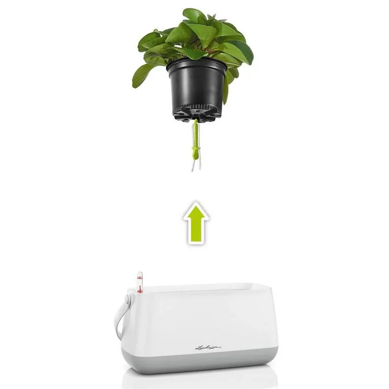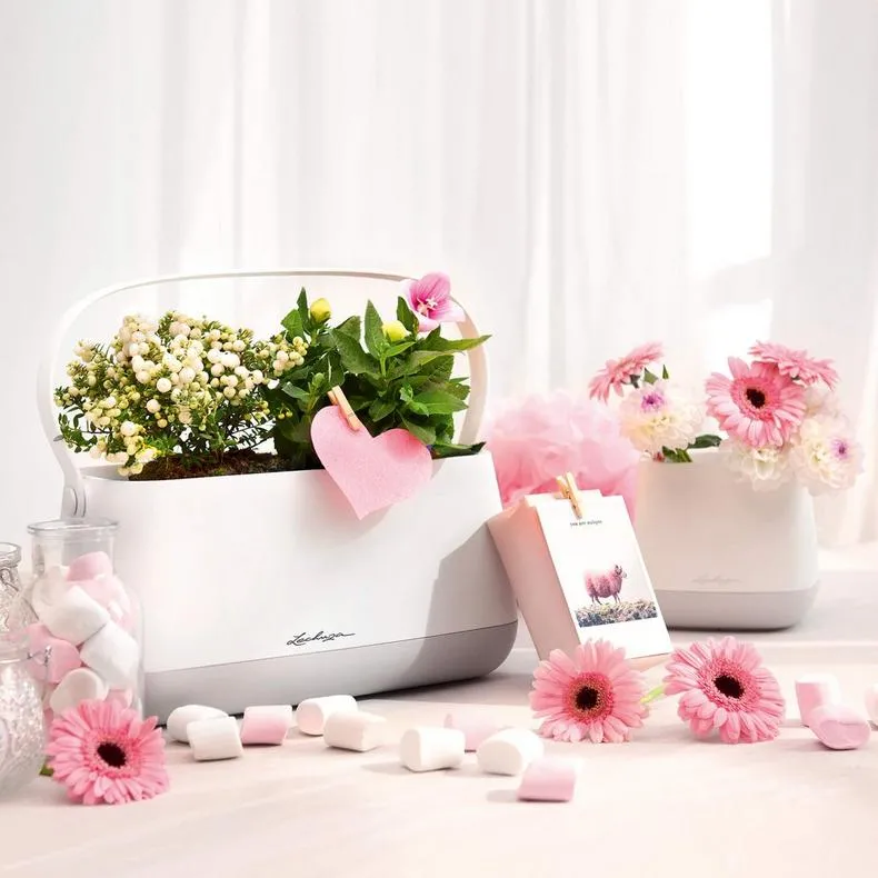 С гармоничными пастельными тонами, матовыми поверхностями и чистыми формами коллекция YULA может быть размещена в любом интерьере. Небольшие апартаменты могут быть легко украшены кашпо, вазой и другими предметами YULA. Купленные растения даже не нужно пересаживать. Они могут оставаться в своем горшке и помещены в кашпо для растений или макраме. Система автополива обеспечивает оптимальную подачу воды к корням в течение определенного периода времени. Это означает, что ручной полив больше не нужен, и ничто не препятствует поездке в отпуск или командировку, которая длится несколько дней. Просто заполните резервуар для воды, и растения будут снабжаться влагой себя в течение нескольких дней.