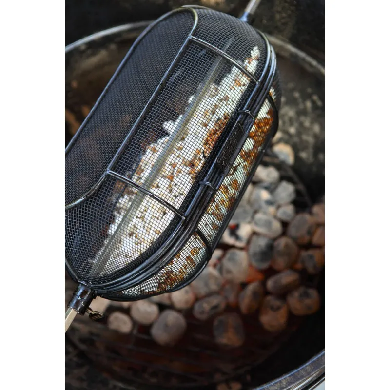 Изделие выполнено из стальной сетки с антипригарным покрытием, что способствует качественному и беспроблемному приготовлению пищи. Корзина для вертела Вебер выделяется также: