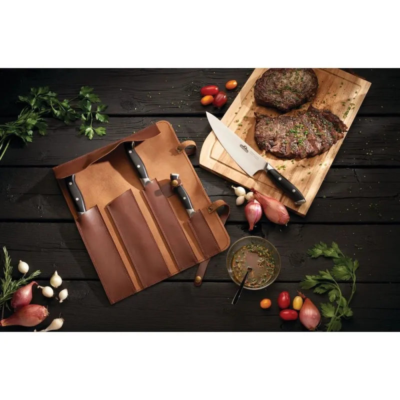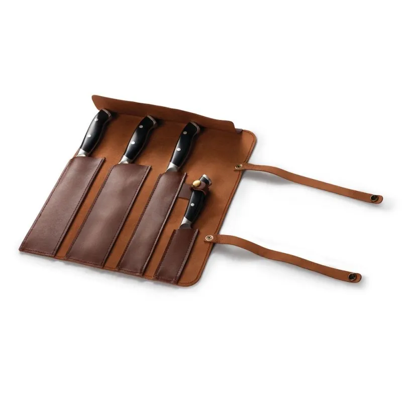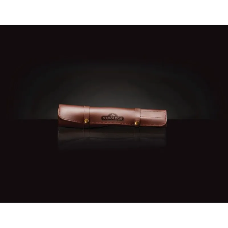 Кожаная сумка для ножей Наполеон защитит ваши ножи от повреждений и других воздействий благодаря четырем индивидуальным отделениям. Это означает, что ножи будут всегда сверхострыми и каждое барбекю будет незабываемым событием. Для хранения можно просто свернуть сумку чтобы сэкономить место.