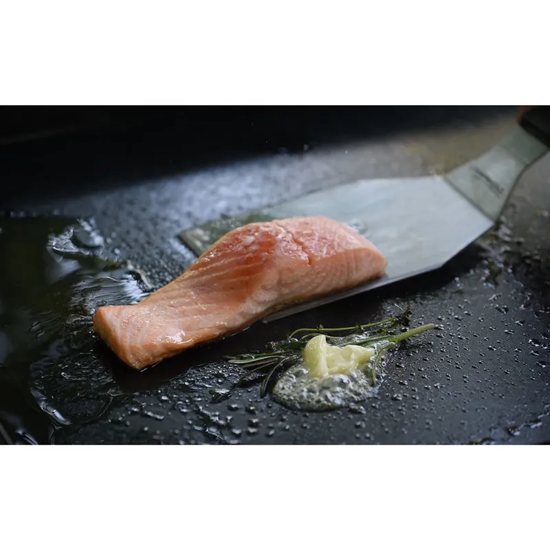 Незаменимый инвентарь для приготовления блюд в стиле "a la plancha" позволяет бережно и быстро перевернуть даже самые нежные продукты. Изготовлен из пищевой нержавеющей стали.