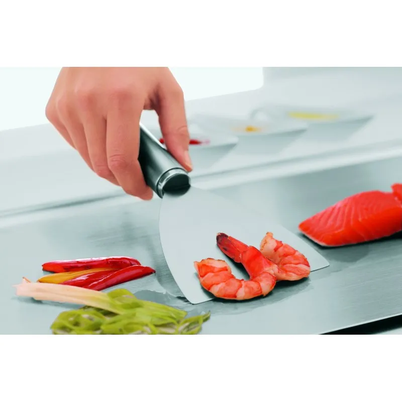 Благодаря скошенному краю лопатки мясо легко снимается с гриля. Прочная, длинная лопатка обеспечивает безопасное расстояние рук от горячих углей. Материал: нержавеющая сталь.