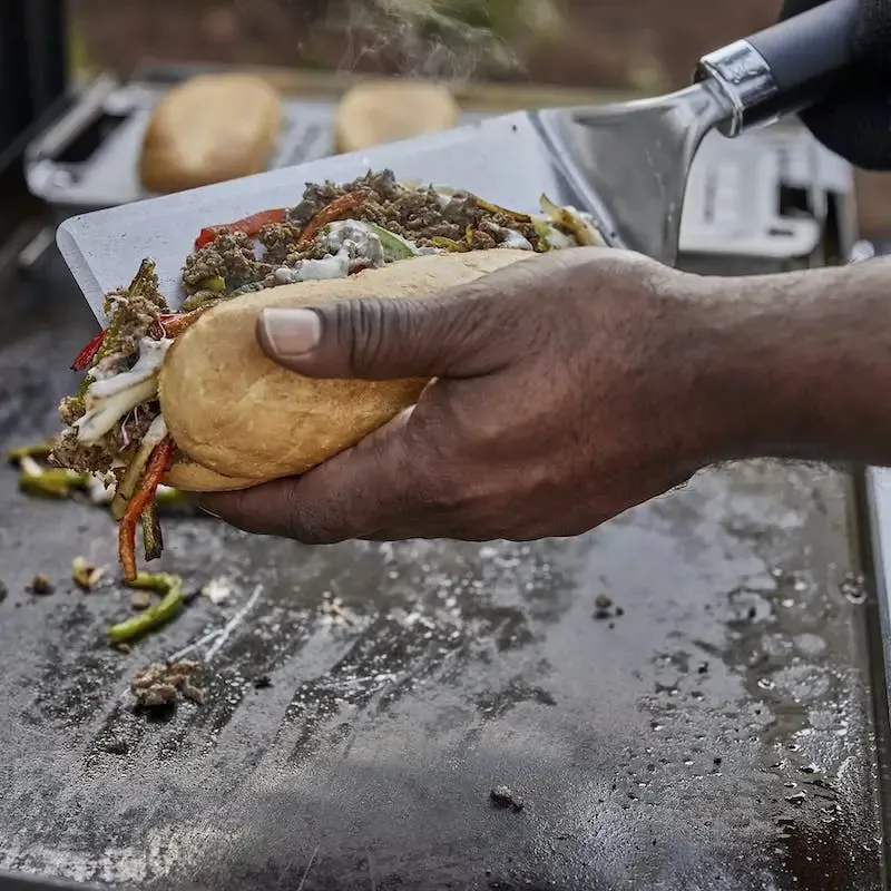 От нескользкой ручки, которую легко захватить, до скошенного края, легко скользящего под еду с любого направления, лопатка сковороды поможет вам удобно и легко маневрировать едой. Ручка тоже приподнята, поэтому вам не придется беспокоиться о том, что она лежит на грязных сторонах.