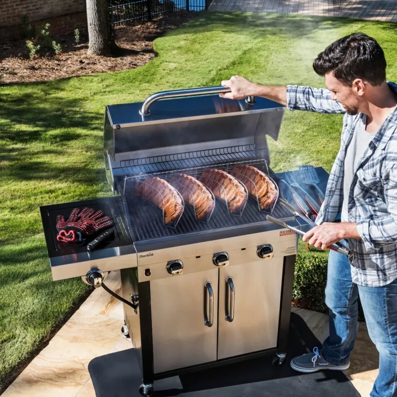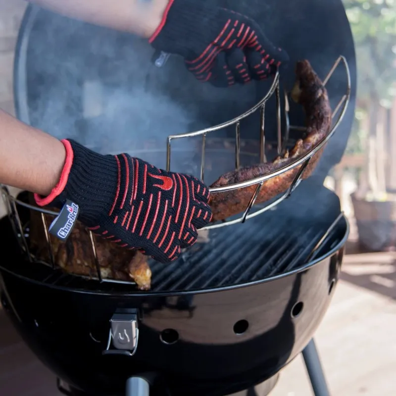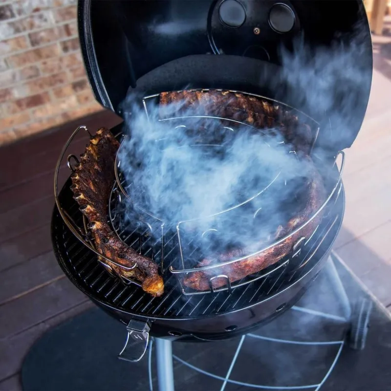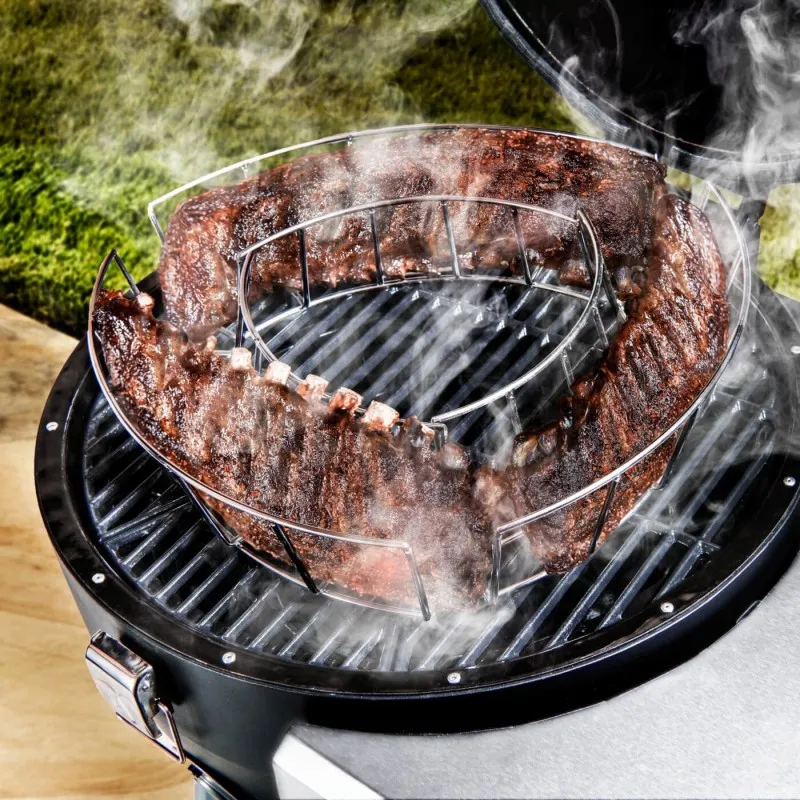 Лоток для ребер увеличенного размера из нержавеющей стали. С легкостью готовьте целую полосу ребер в вертикальном положении.