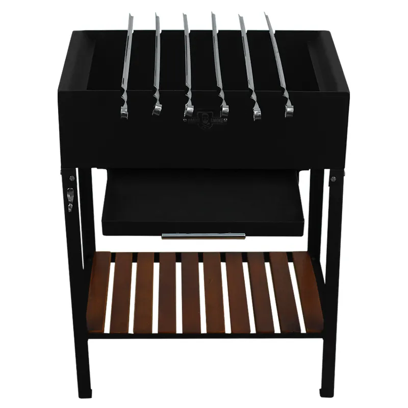 Модель стационарного мангала торговой марки Daddy Smoke рассчитанный на 6 шампуров. Разрабатывая этот мангал, мы попытались совместить минимализм с максимальной функциональностью.