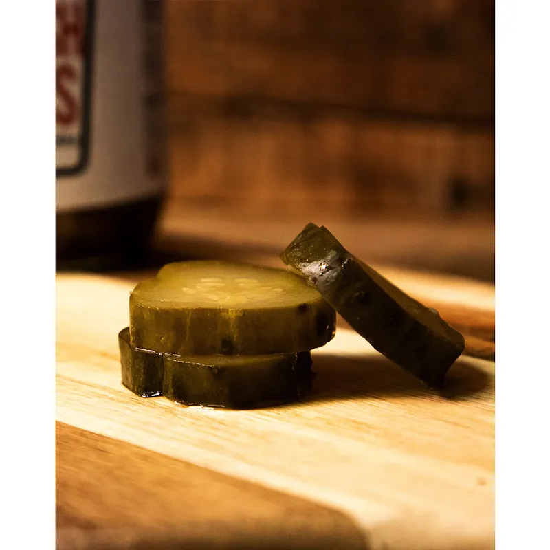 Ингредиенты: огурцы, вода, дистиллированный уксус, лук, соль, чеснок, крабовый отвар (вода, полисорбат 80, экстракты специй (включая экстракт стручкового перца), натуральные и искусственные ароматизаторы, карамельный краситель и экстракты паприки), свежий кальций.