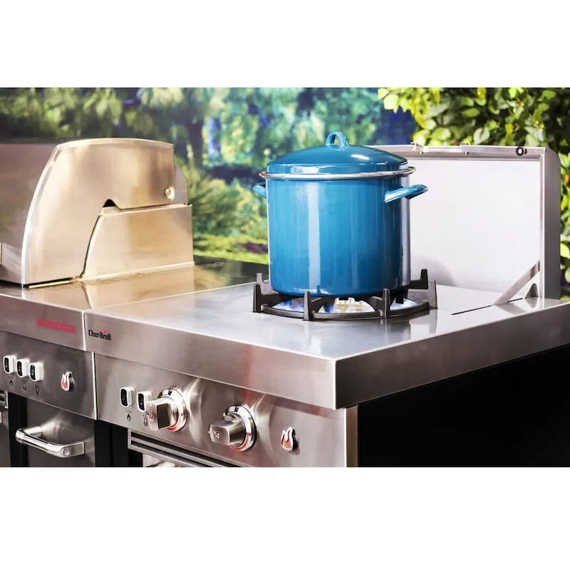Уличная плита Char-Broil® является одним из главных компонентов для вашей модульной наружной кухни Medallion Series™. Благодаря универсальному дизайну плиту можно установить в конструкцию так, как вы сами пожелаете. Двойные конфорки позволяют вам легко контролировать температуру приготовления блюд, чугунная решетка крепкая, долговечная и выдерживает даже большие кастрюли до ста литров. Готовьте в любое время дня, это легко и удобно благодаря простой системе электронного запала SureFire® и встроенным светодиодным ручкам газа.
