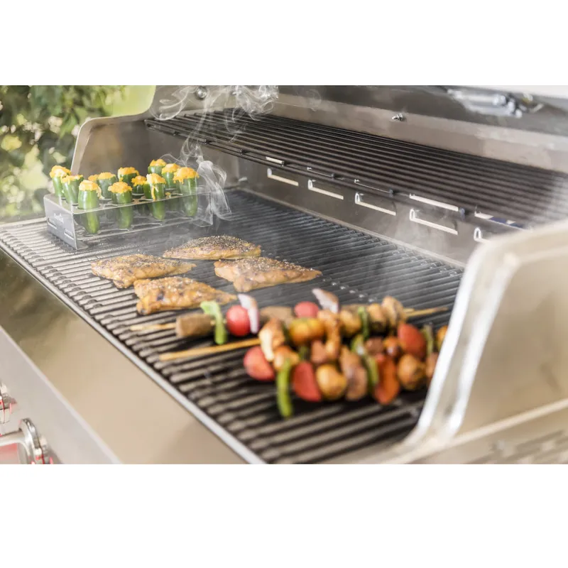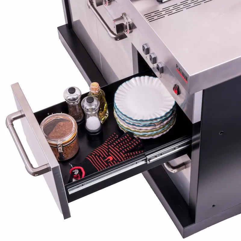 Инфракрасный газовый гриль-кухня Char-Broil PLATINUM MOK 5. С ним вы получаете полный пакет преимуществ грилей марки Char-Broil. Благодаря своей гибкой конфигурации этот газовый гриль можно интегрировать в модульную уличную кухню Char-Broil®, так как вы сами пожелаете. Помимо своих многочисленных вариантов конфигурации, гриль также приспособлен для работы в любое время суток благодаря встроенным галогенным и светодиодным подсветкам зоны приготовления и ручек горелок. Среди дополнительных преимуществ гриль Char-Broil PLATINUM MOK 5; высококачественная нержавеющая сталь, надежное электронное зажигание SureFire®, две выдвижные полочки для аксессуаров и газового баллона, колеса и ножки регулируемые по высоте.