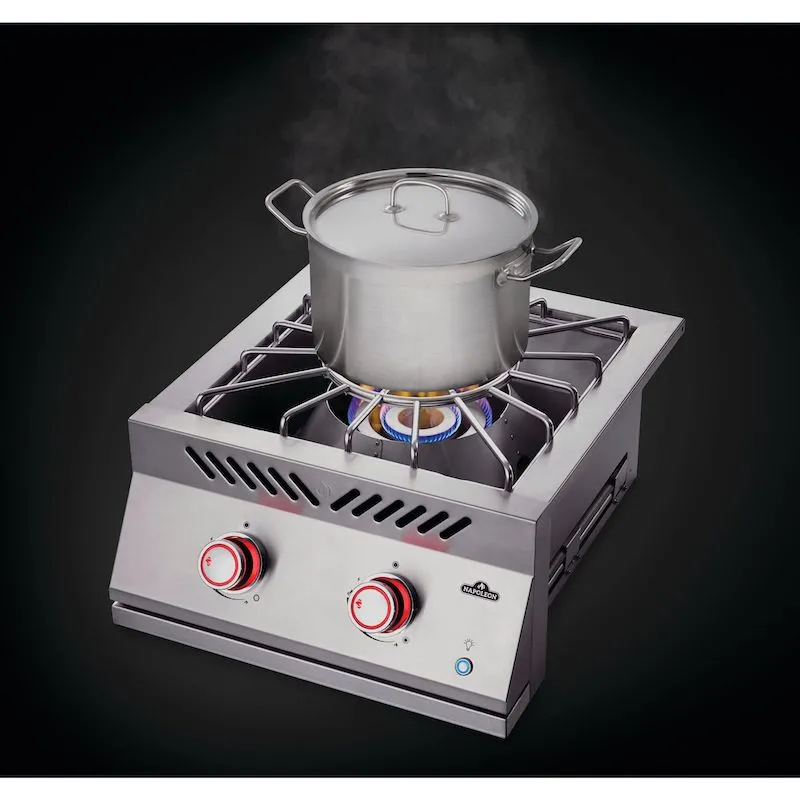 Конфорка для вока от Napoleon — универсальное решение для уличной кухни. Мощная кольцевая конфорка с невероятной мощностью 17,6 кВт может регулироваться в два этапа, так что вы можете жарить и варить в широком диапазоне температур. От разогрева и медленного тушения супов и соусов до интенсивного обжаривания мяса и овощей — у вас есть все возможности для самых разных целей.