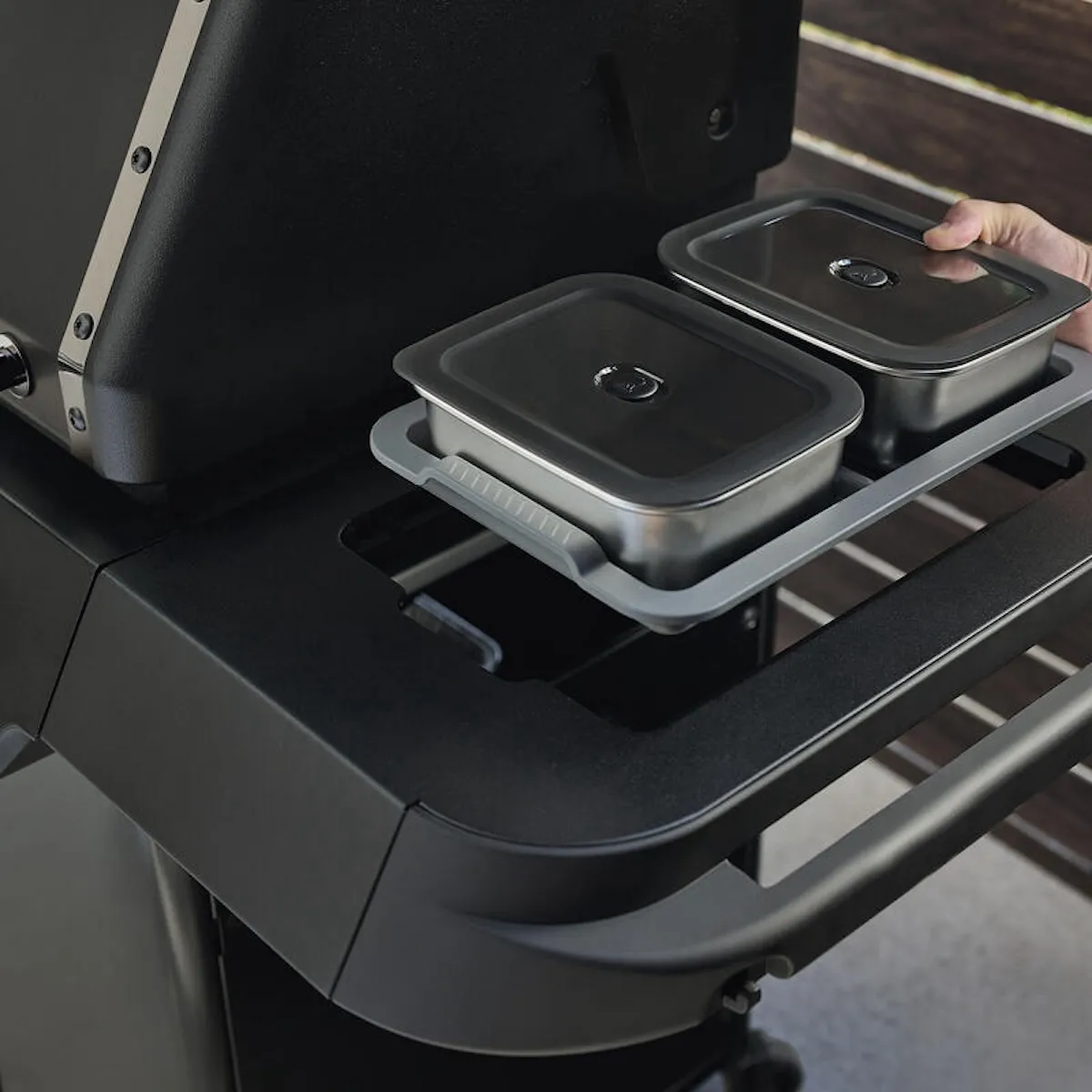 Набор для подготовки и сервировки Weber Works – с кухни на гриль и прямо к столу. Готовьте, переносите и подавайте блюда с лёгкостью вместе с набором Weber Works. Этот продуманный комплект включает два контейнера из нержавеющей стали для подготовки продуктов с герметичными крышками, а также два разделённых подноса для сервировки, которые удобно складываются один в другой. Просто вставьте их в боковой столик Weber Works или разместите рядом на увеличенном столе Weber Works XL. Замаринуйте мясо или сохраните гарниры в контейнерах, перенесите их к грилю для приготовления, подайте готовые блюда на подносах, а затем просто загрузите всё в посудомоечную машину — и готово! Подходит для совместимых моделей грилей Weber с боковыми столами Weber Works или Weber Works XL.