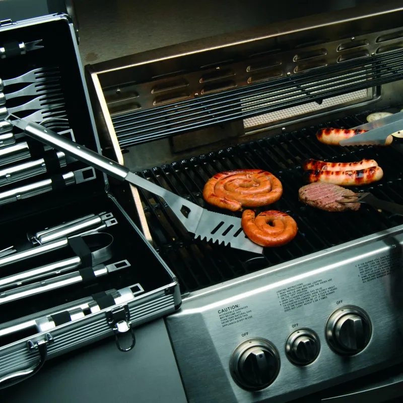 Предметы для барбекю изготовлены из высококачественной стали марки X30Cr13. Матовая полировка. Ручки изготовлены из нержавеющей стали. Идеально подходит для домашнего и профессионального приготовления. Упаковано в кейс.