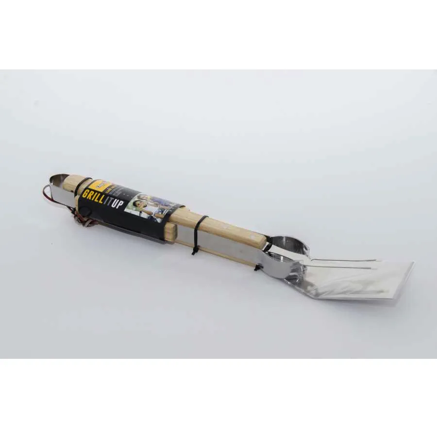 Специально разработанный набор для барбекю от Char-Broil. Набор состоит из лопатки, вилки и щипцов. Все инструменты изготовлены из нержавеющей стали с бамбуковыми ручками, что делает их удобными в ваших руках. Каждый инструмент имеет прочный кожаный пояс, чтобы можно было повесить в удобном для вас месте.