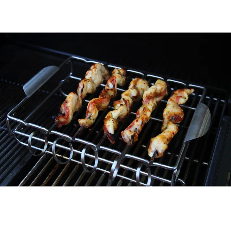 Если Вы уже являетесь владельцем такого замечательного устройства как газовый или угольный гриль и любите готовить различные мясные, овощные или рыбные гриль-блюда, то Вам обязательно понадобятся аксессуары, которые помогут создать большое разнообразие кулинарных шедевров. Набор для люля-кебаб и шашлыка – это как раз тот аксессуар, который необходим для тех, кто не хочет ограничивать свое гриль-меню одними стейками. Этот замечательный аксессуар поможет приготовить настоящие люля-кебаб, мясной или овощной шашлык, а также служит одновременно решеткой для приготовления рыбы. Изготовленный из высококачественной пищевой нержавеющей стали, набор для люля-кебаб и шашлыка непременно разнообразит Вашу кулинарную жизнь, придав ей не только новые ароматы и вкусы, а и неповторимые эмоции и впечатления! Фирменный набор для шашлыка и люля-кебаб GrandHall – еще один способ разнообразить вашу кухню. Этот аксессуар также идеально подходит для приготовления рыбы, куриных крыльев или даже овощей. Комплект выполнен из пищевой полированной нержавеющей стали, что позволяет легко очищать набор, а также гарантирует безопасное приготовление и длительный срок службы.
