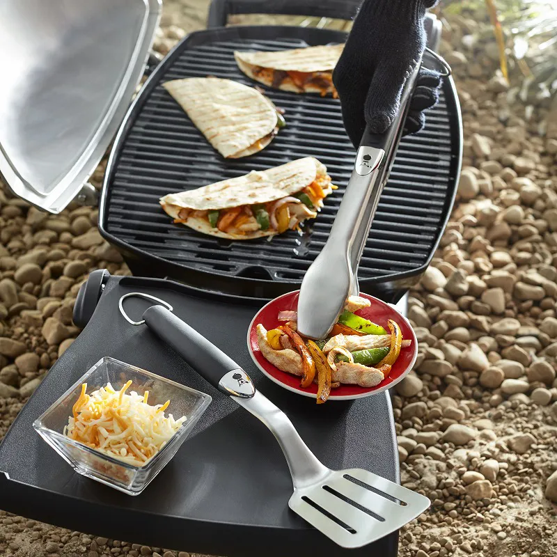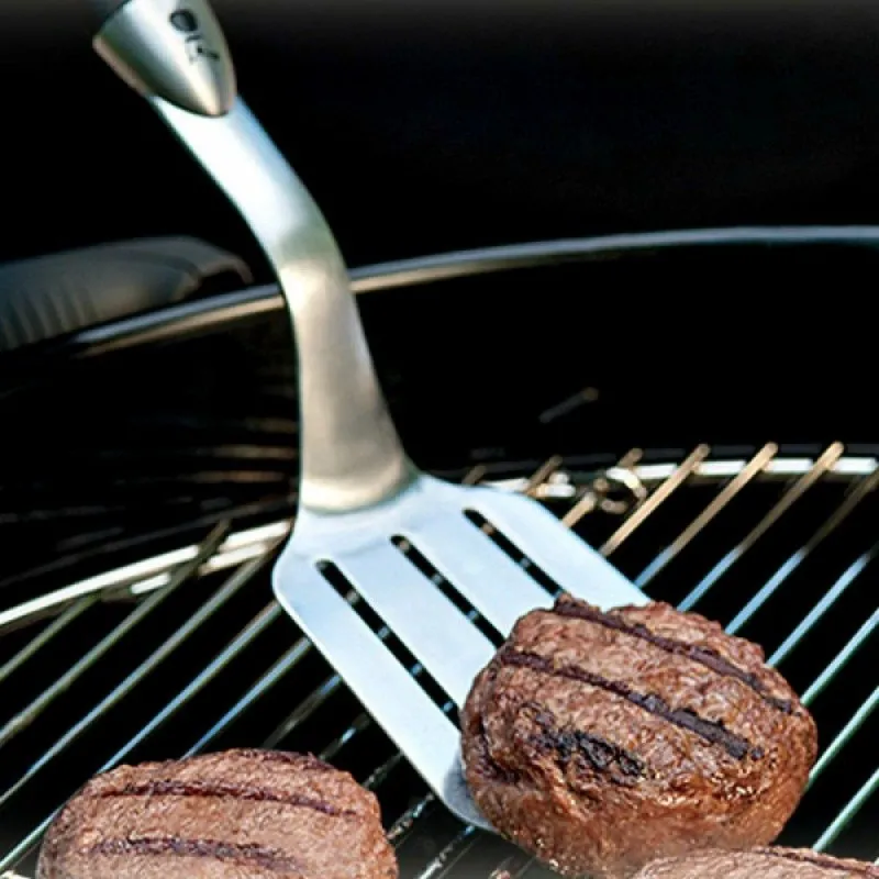 Лопатка и щипцы обязательно должны быть под рукой, когда вы пользуетесь грилем. Эти вспомогательные инструменты «Вебер» для барбекю имеют продуманный дизайн, благодаря которому вы без труда будете переворачивать продукты: