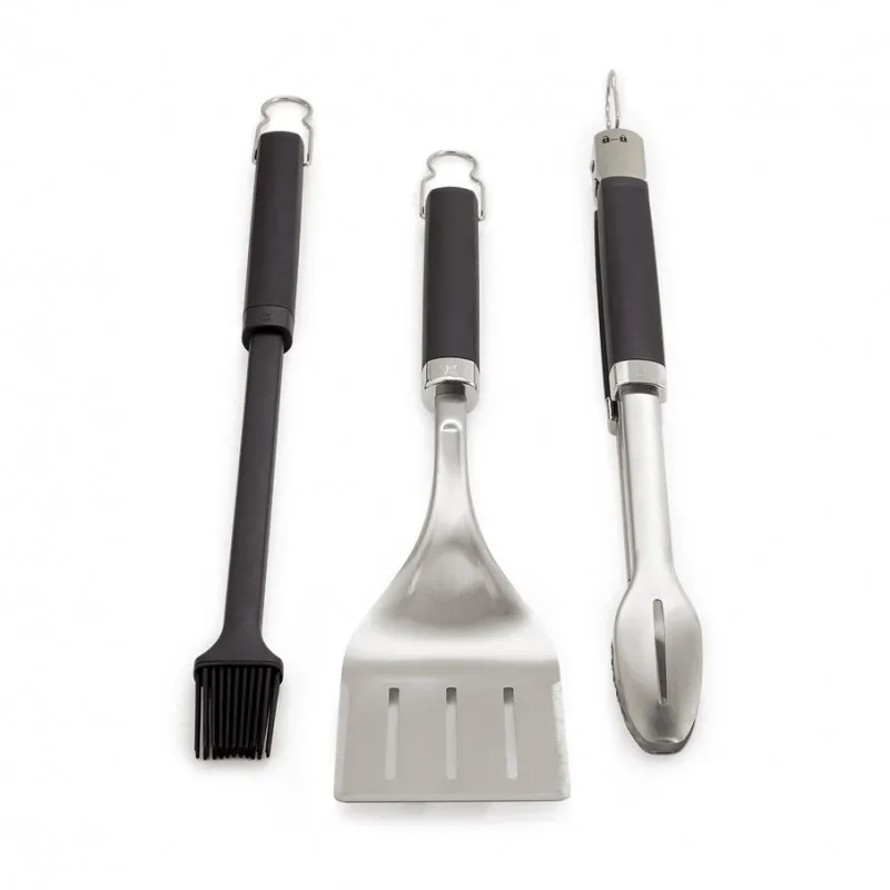 Ищете, что можно подарить друзьям, имеющим гриль? Или пытаетесь отыскать подходящие инструменты, чтобы расширить свое меню, и готовить на барбекю самые разнообразные блюда? Наш интернет-магазин предлагает заказать фирменный набор из 3 инструментов от Вебер. Он включает в себя три предмета, незаменимых при жарке мяса, рыбы и овощей: