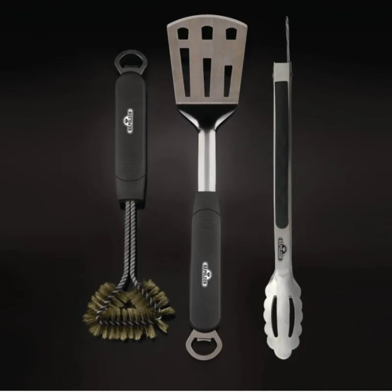 Набор из трех предметов Napoleon состоит из щипцов, лопатки с открывалкой для бутылок и латунной щетки. Это незаменимые аксессуары для любого барбекю. Этот набор идеально подходит для портативных газовых и электрического грилей серии TravelQ, но также может использоваться и для небольших угольных грилей. Столовые приборы Napoleon изготовлены из высококачественных материалов, отличаются оригинальным дизайном и очень удобны в использовании. Теперь Вы можете взять свой гриль на пикник вместе со столовими приборами для барбекю.