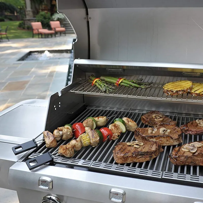 Двойные шампура SABER из нержавеющей стали AISI 304 отличаються двойными зубьями, чтобы держать пищу от вращения или падения. 35-сантиметровые зубцы и плоские ручки надежно сохраняют руки в безопасности от горячего гриля и облегчают поворот.