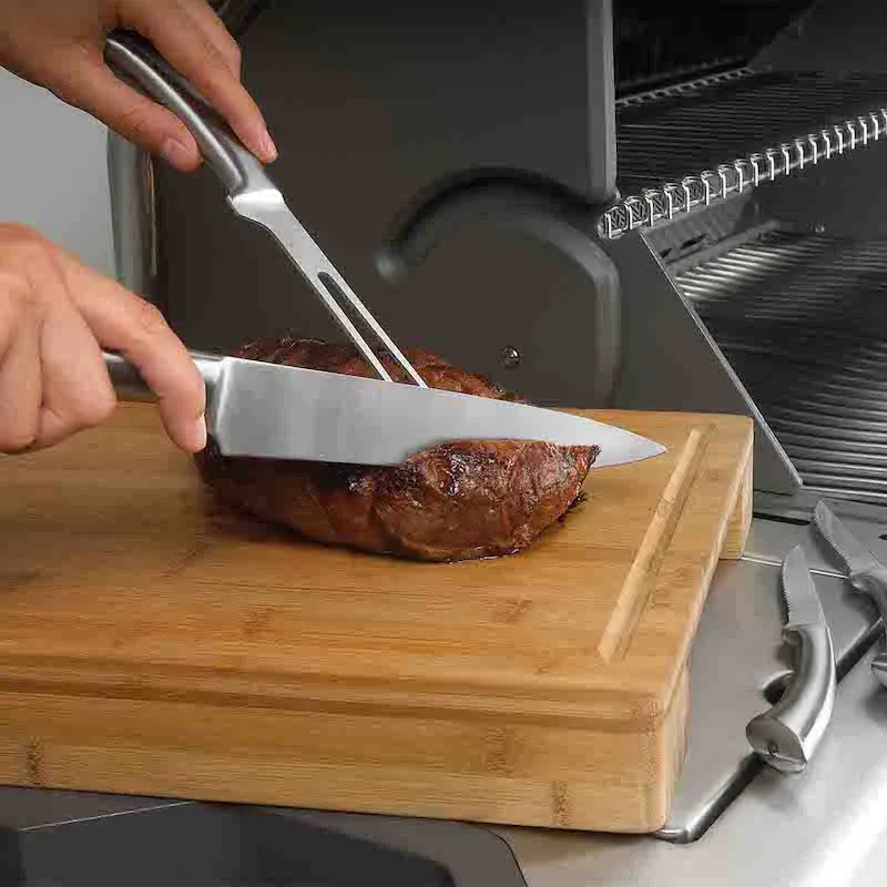 Набор ножей Наполеон включает все необходимые лезвия для быстрой и качественной разделки мяса. В набор входят четыре ножа для стейков, длинная вилка и нож для разделки мяса.