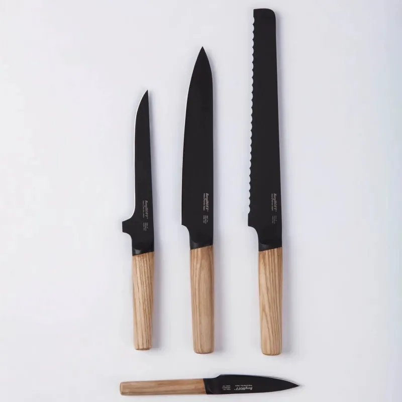 Уникальная серия ножей от BergHOFF. Ножи изготовлены из высококачественной стали с примесями хрома, молибдена и ванадия, что придает ножам гибкость и прочность одновременно. Для большей гигиеничности и надежности лезвия покрыты тефлоновым покрытием. Ножи тщательно отбалансированы, ручки полые. Рекомендуется мыть вручную.