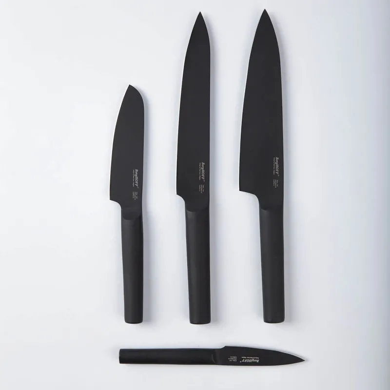 Уникальная серия ножей от BergHOFF. Ножи изготовлены из высококачественной стали с примесями хрома, молибдена и ванадия, что придает ножам гибкость и прочность одновременно. Для большей гигиеничности и надежности лезвия покрыты тефлоновым покрытием. Ножи тщательно отбалансированы, ручки полые. Рекомендуется мыть вручную.