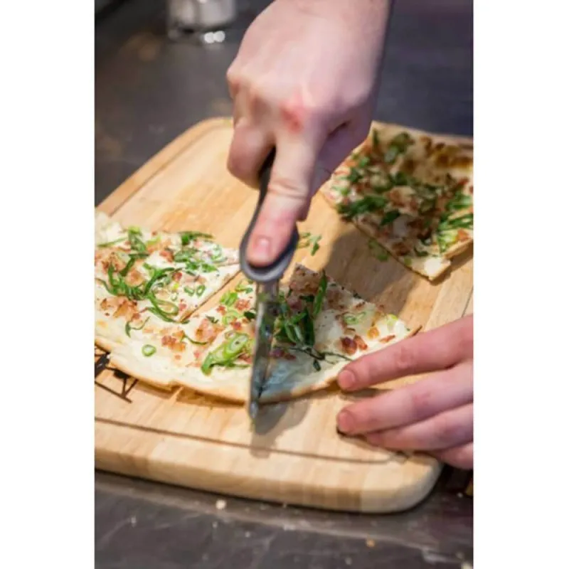 Благодаря отрезному кругу большого диаметра, этот эффективный инструмент режет все виды пиццы с толстой и тонкой корочкой, как горячий нож, проходящий через масло. Мощная ручка для удобного захвата помогает выполнять работу намного проще и быстрее с минимальными усилиями.
