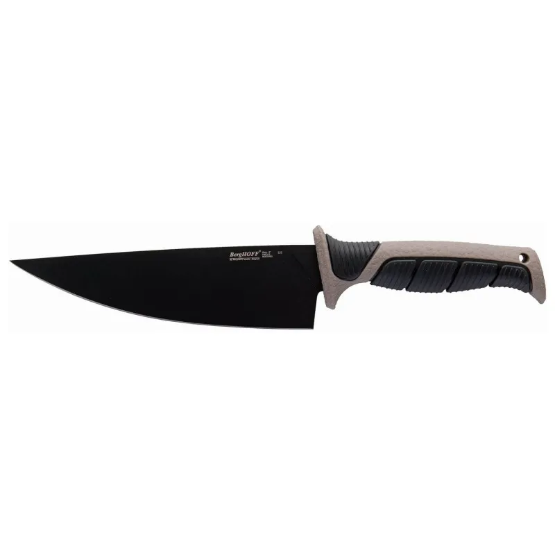 Поварской нож из охотничьей серии. Новинка, которую оценят любители активного отдыха. Нож изготовлен из нержавеющей стали марки X30Cr13. Ручка из качественного пропилена удобно лежит в руке благодаря рельефному силиконовому покрытию. Чехол для безопасного хранения сделан из прочной ткани и снабжен застежкой. Рекомендуется мыть вручную.