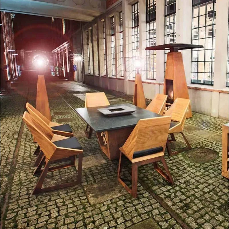 Обеденный комплект с гриль-очагом Quan Quadro Corten, на 6 персон