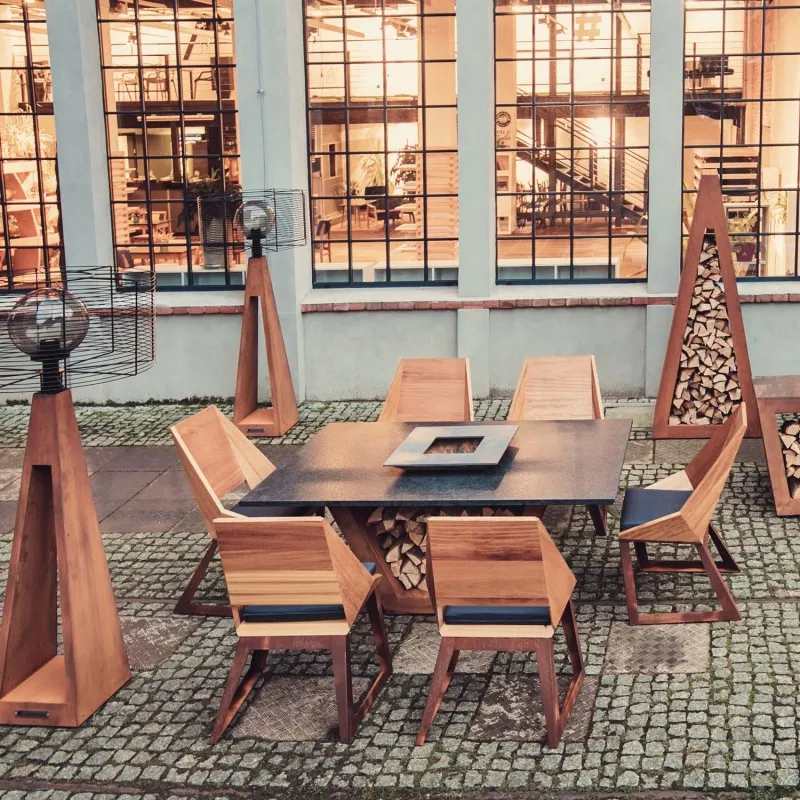 Обеденный комплект Quan Quadro Corten из кортена - это набор уличной мебели премиум-класса, который придаст классный вид вашему саду и рассчитан на всю жизнь. Обеденный стол изготовлен из толстой кортеновской стали, что придает ему стильный вид. Гранитная столешница легко чистится, основание с хранилищем для дров обеспечивает хорошую устойчивость. На столешнице в центре находится гриль и чаша для костра, что создает идеальную атмосферу для общественных встреч и трапез на открытом воздухе как днем, так и поздно вечером. Гриль-очаг является уникальной особенностью и создает эксклюзивную атмосферу. Верхняя часть стульев изготовлена из твердой древесины Iroco «африканский тик», обработанной водоотталкивающей краской морского класса. Удобные и прочные стол и стулья дополняют широкий ассортимент товаров для активного отдыха Quan Garden Art.