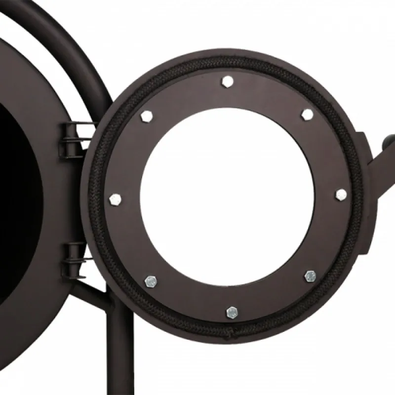 Печь Daddy Smoke предназначена для отопления помещений площадью до 50м2 и объемом 130м3. В дверцу встроено жаростойкое стекло, которое позволяет наблюдать за процессом горения холодными, зимними вечерами. Керамический шнур, проклеенный по периметру двери, обеспечивает герметичное закрывание печи. Патрубок поддувала находится под топкой, а регулятор вынесен на переднюю стенку, под дверцу. Вместительная топка с размерами 650х420мм и толщиной металла в 6мм позволяет работать до 7 часов без дозагрузки топливом.