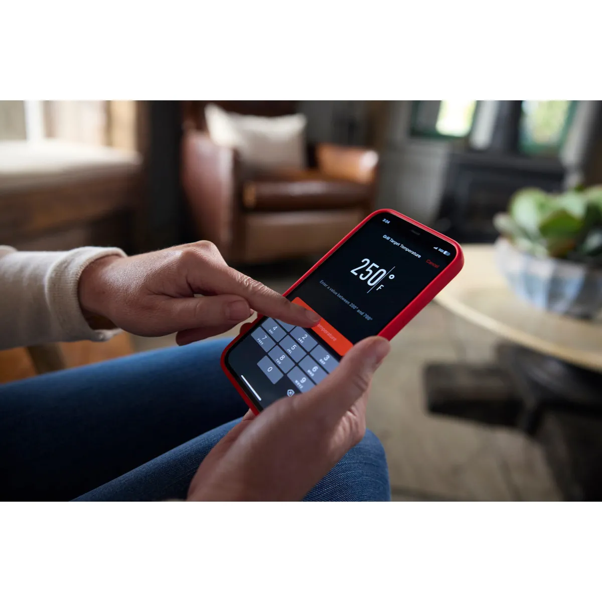 - Цифровой контроллер Weber Connect®. Оснащён удобным ЖК-дисплеем — позволяет точно задавать температуру, контролировать процесс и добиваться стабильного результата при каждом приготовлении.