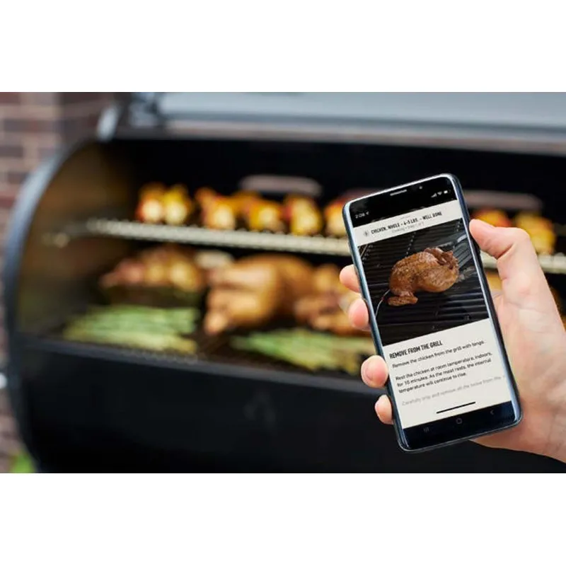 - Технологичность: этот пеллетный гриль Вебер имеет встроенный Weber Connect, позволяющий подключиться со смартфона и контролировать процесс, получать уведомления.