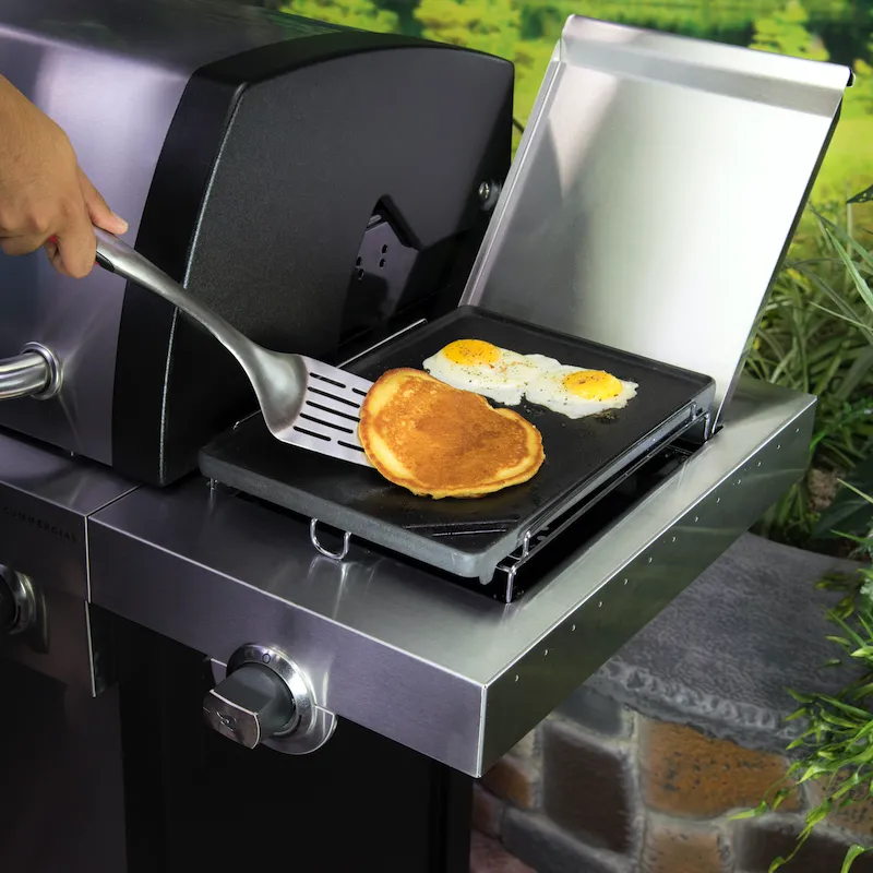 Хотите получить больше от вашего гриля? С чугунным тепаном для гриля, покрытым фарфором, вы можете превратить свою боковую конфорку в удобную сковородку для гриля. Свежие омлеты, горячие блины или хрустящий бекон — возможности безграничны! Универсальный чугунный тепан подходит для большинства газовых грилей Char-Broil.