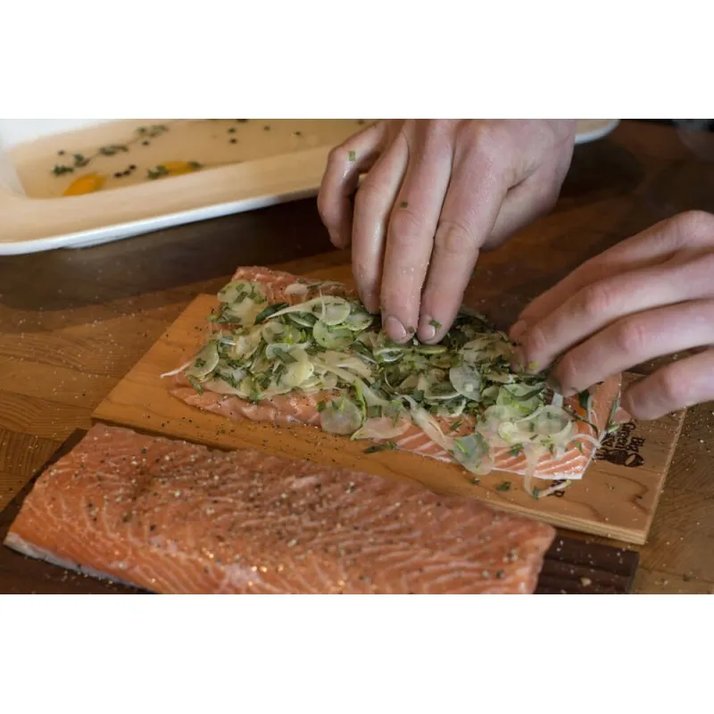 Деревянные планки для запекания продуктов в гриле прямо на них. Позволяют готовить на относительно высоких температурах (180-200 С), при этом обеспечивая эффект горячего копчения. Идеально подходят для запекания мяса. Размеры: 38 х 14 см.
